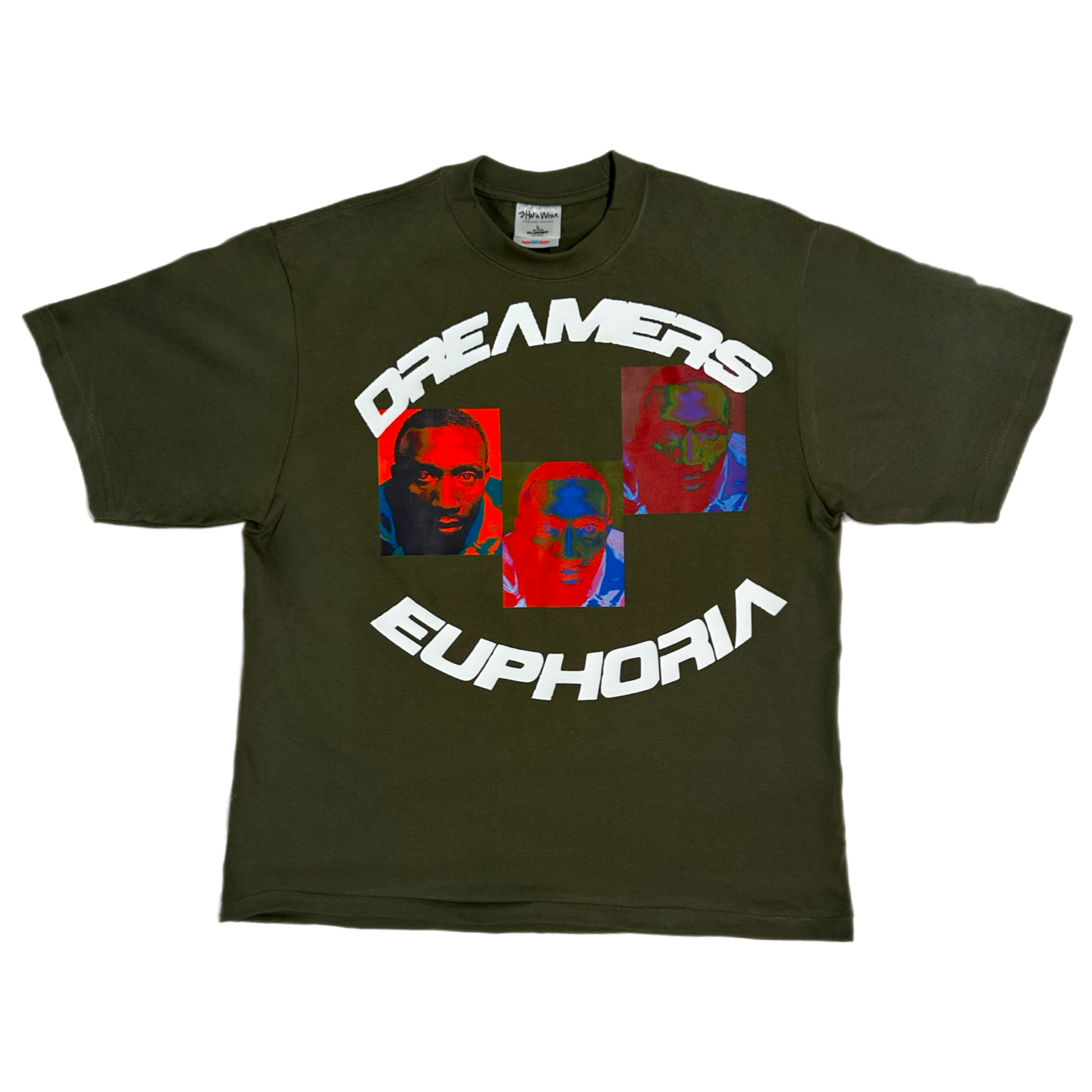 Crafted from premium cotton, this shirt features a striking front graphic that blends vivid colors and abstract portraits, symbolizing creativity and vision.